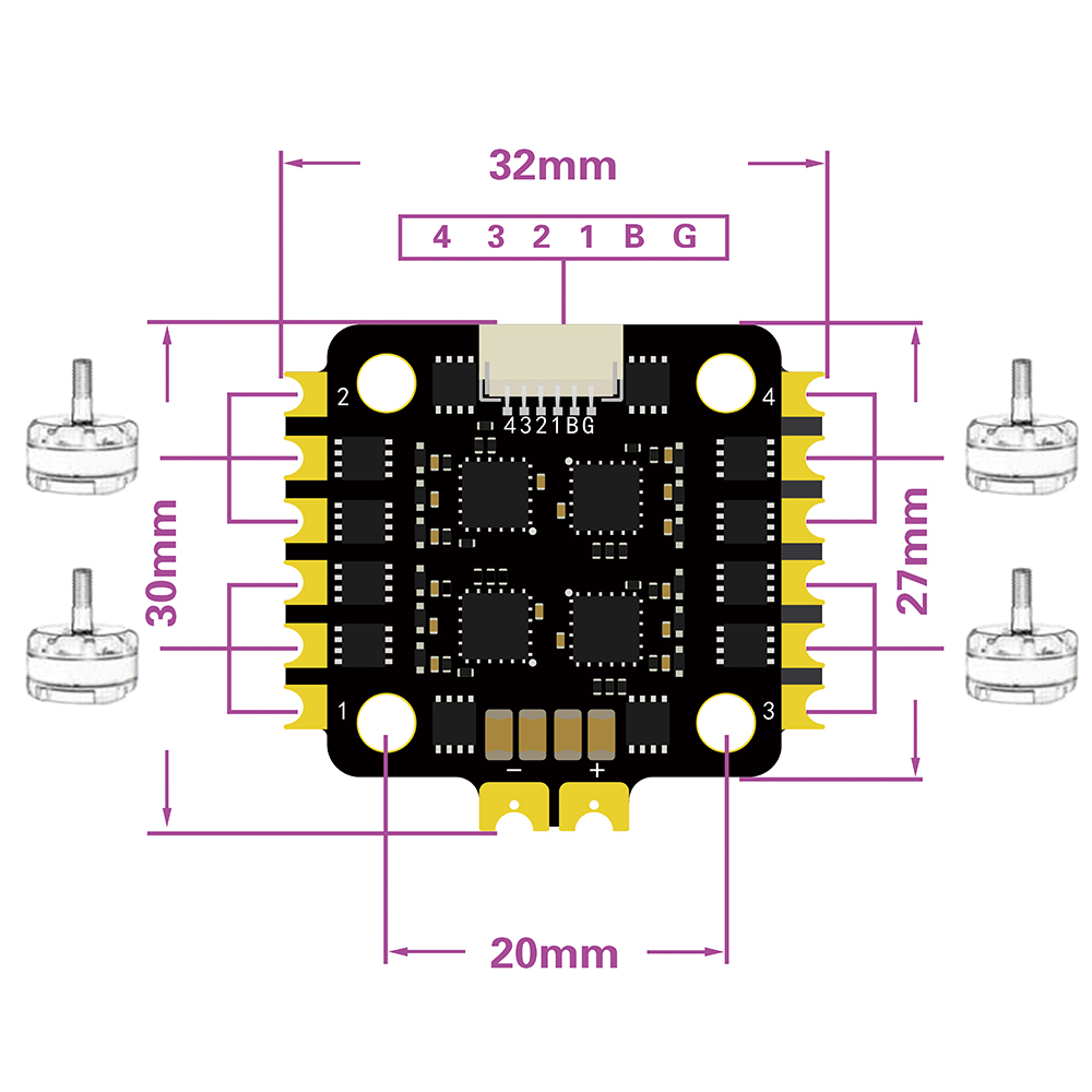 4IN1设计:将四个ESC集成到一个单元中,简化接线和安装,同时最大限度地减少重量。15A